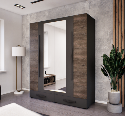 A Nuvria gardróbszekrény egyszerű és modern megjelenésével tökéletesen illik bármilyen térbe. A 18 mm-es laminált forgácslap korpusz ABS élzárással készül, a hátfal pedig strapabíró HDF lemez. A két részből álló gardrób egy 80 cm-es polcos-akasztós és egy 40 cm-es polcos egységet tartalmaz, fém polctartókkal a maximális stabilitás érdekében.